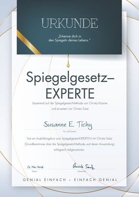 mich. Aufgrund der unzähligen Bücher und Seminare, die ich besucht hatte, war mir bewusst, dass alles im Außen mit mir zu tun hat. Also raus aus der Opferrolle! Aber WIE? Ende 2017 bin ich auf Christa Saitz und die Spiegelgesetz-Methode gestoßen und mir ist schnell klar geworden, dass ich hier einen Weg gefunden habe, der rasch und effizient funktioniert.
